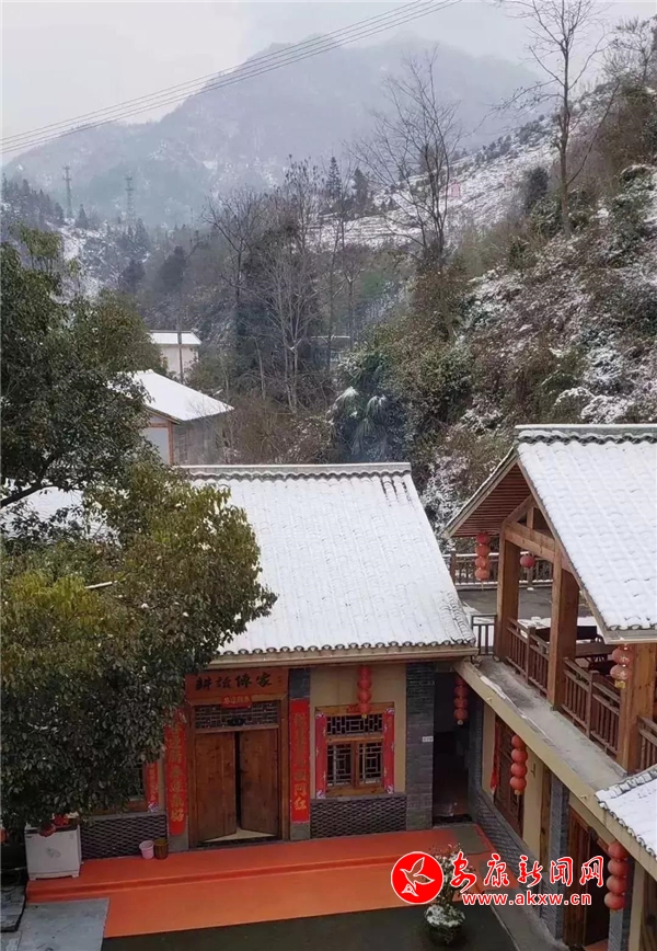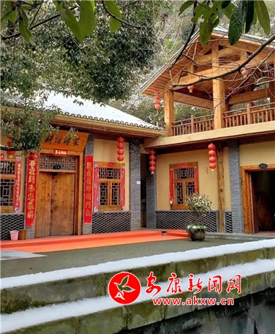 紅屋檐、紅格窗、紅木門、紅楹聯(lián)、紅地毯,還有那懸掛在屋頂上隨風(fēng)舞動(dòng)的紅燈籠,在瑟瑟寒風(fēng)和茫茫白雪中,才顯其妖嬈展姿。這里,是紅與白色澤、熱與冷色溫的匯聚。紅,是一枝梅,是數(shù)盞燈,是萬家火,是山里人熱騰騰好日子的主色調(diào)……