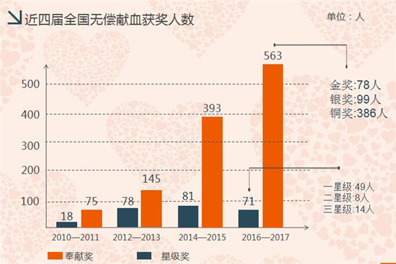 4、我市全國(guó)無償獻(xiàn)血奉獻(xiàn)獎(jiǎng)獲獎(jiǎng)人數(shù)創(chuàng)歷史新高