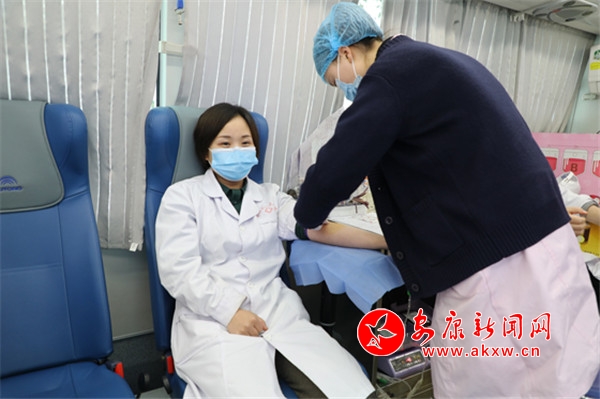 獻血車上,不僅有像楊明安這樣的“??汀?,還有很多第一次參加無償獻血的青年醫(yī)務(wù)人員。