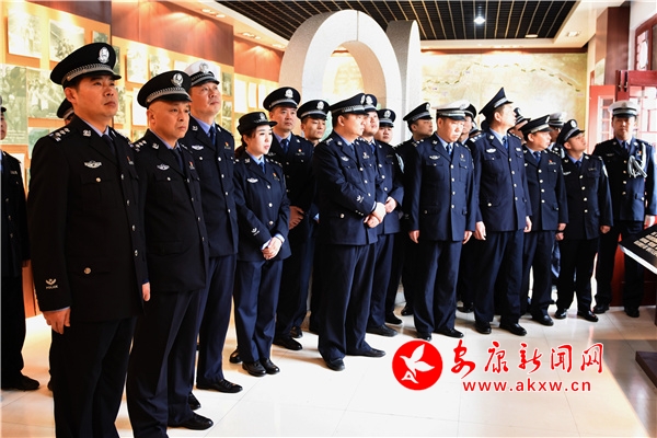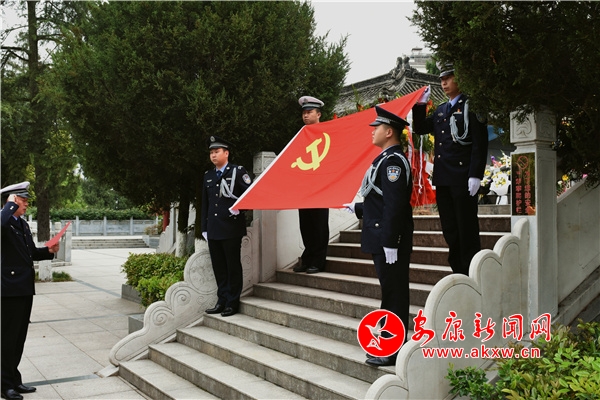 在巍然聳立的烈士紀(jì)念碑前,全體民警輔警整齊列隊(duì)、莊重肅立。民警代表首先向英雄烈士敬獻(xiàn)了花籃,全體人員脫帽肅立、鞠躬默哀,并依次上前瞻仰英雄烈士,通過回顧英雄事跡,表達(dá)對革命先烈的深切悼念和無限哀思。隨后,全體黨員同志站在烈士紀(jì)念碑前高舉右手,莊嚴(yán)宣誓,在鏗鏘誓言中重憶入黨入警初心、告慰英靈。