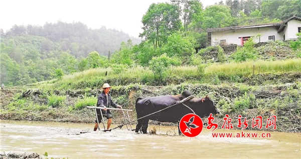 聽說要請他給我們講恒口貢米的故事,他煞有介事地愣了愣,說帶我們?nèi)ヌ镩g看看,再講。過了春分,耕種的土地上,我們感受到的是“農(nóng)家少閑月,五月人倍忙”的景象!在這里,沒有轟隆隆的機器聲,只用耕牛犁田,育苗平整,農(nóng)忙的身影在正暖的春陽與如織的細(xì)雨中穿梭。
