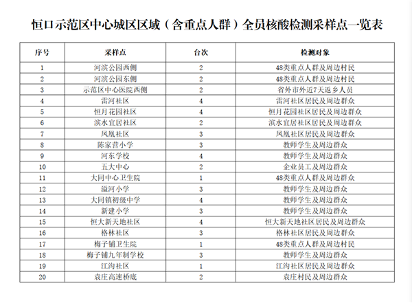 關(guān)于開(kāi)展恒口示范區(qū)中心城區(qū)區(qū)域全員及重點(diǎn)人群核酸檢測(cè)的通告
