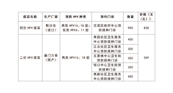 漢濱區(qū):二/四價人乳頭瘤病毒(HPV)疫苗預約通知