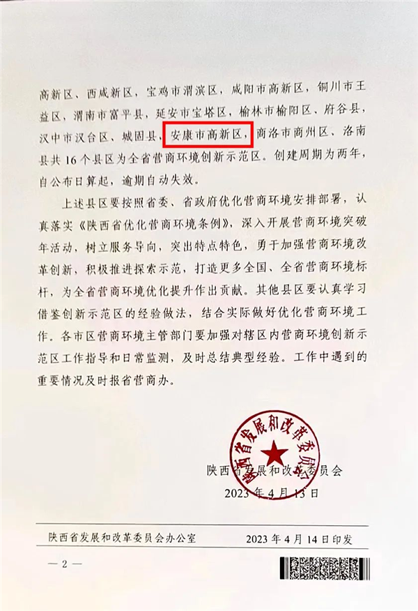 安康高新區(qū)獲批陜西省首批“營商環(huán)境創(chuàng)新示范區(qū)”