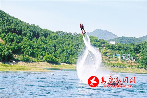 休閑勝地翠屏島,最大的亮點是玉清橋的彩虹瀑布,游客從橋下經(jīng)過,感受“瀛湖之水天上來”的曼妙,這也是瀛湖為游客送上的初夏第一絲清涼。橋頭幸福的天梯、鳥巢,成為排隊拍照的絕佳點位。運動場上,滾鐵環(huán)、射箭、投壺、打籃球,讓游客流連忘返。兒童樂園旁,微型爆米花機勾起了孩子們參與的興趣,彩繪激發(fā)了孩子們的繪畫熱情。瀛湖水上嘉年華,精彩刺激的水上項目帶給游客酣暢的體驗,游客紛紛直呼“過癮”!