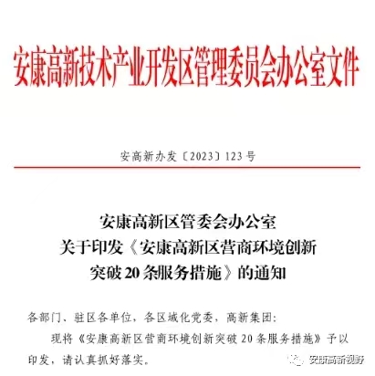 聚焦“三個(gè)年” | 安康高新區(qū)出臺營商環(huán)境創(chuàng)新突破“二十條”服務(wù)措施
