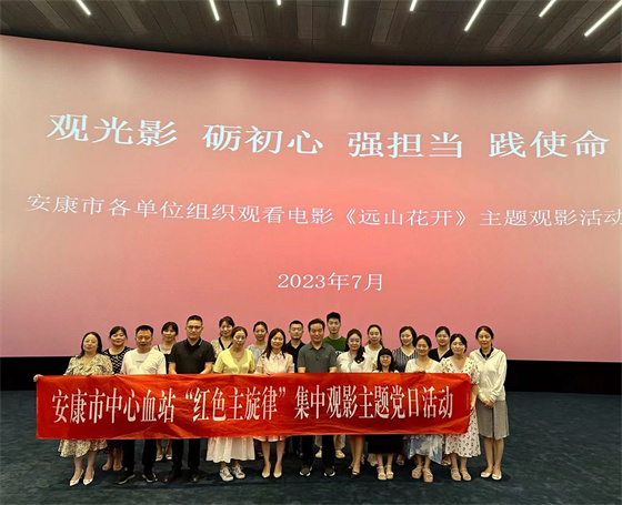 7月21日,安康市中心血站組織開(kāi)展“紅色主旋律”集中觀影主題黨日活動(dòng),組織20余名黨員干部、職工觀看了以蘇陜協(xié)作、教育扶貧為主題的電影《遠(yuǎn)山花開(kāi)》。