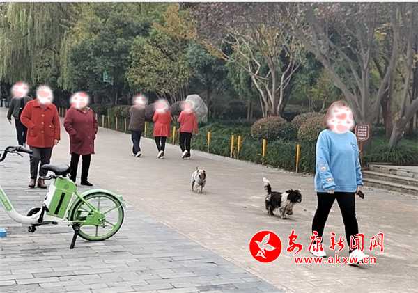 11月8日下午,興安公園小廣場(chǎng)內(nèi)有市民遛狗未牽繩,寵物犬綠地隨意便溺。(圖文/周薇)