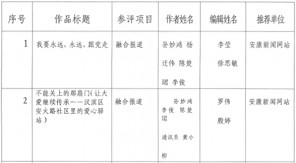 按照省記協(xié)要求,特將推薦參評2023年度陜西新聞獎融合報(bào)道初評的作品予以公示。公示期為2024年1月16日至1月22日,在此期間內(nèi)如有異議請向新聞管理部反饋。報(bào)送作品如下:?