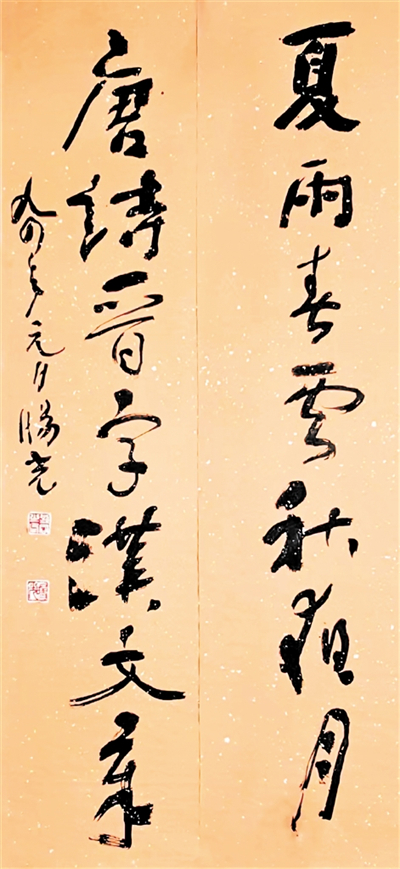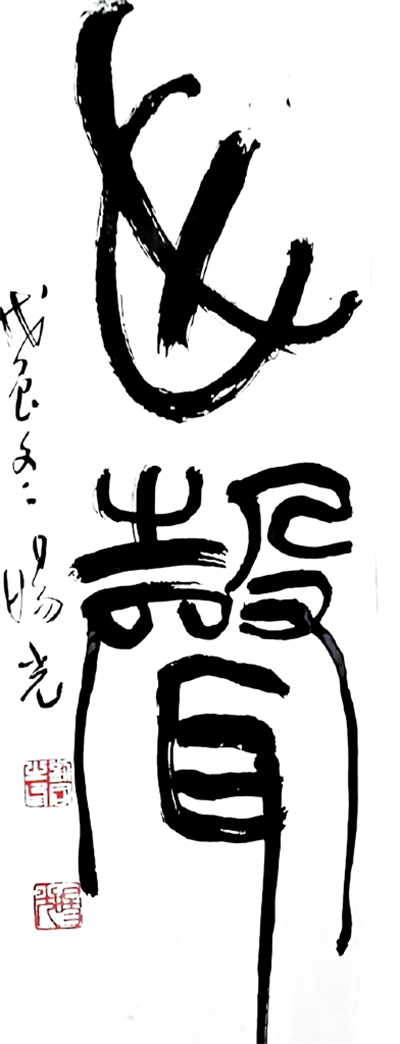 旸光先生淵博的家學(xué),深厚的學(xué)養(yǎng)為其書法技藝開掘出流淌不盡的源泉,正是他那非凡的經(jīng)歷與盤踞胸中的郁勃之氣,鑄就了別具一格的藝術(shù)風(fēng)采??v觀先生書法字里行間的布局、結(jié)構(gòu)、章法,即可以領(lǐng)略其高深的藝術(shù)修養(yǎng)。一般書法家給自己作品題款尚膽怯,更何況給山水畫人物、花鳥畫題款署名,書寫跋語,要求書者不但有深厚的文學(xué)功底賦詞作詩,再根據(jù)畫面的風(fēng)格,畫中所留空白虛實照應(yīng),用筆用墨的變化去應(yīng)對,好的款跋使作品升華。而先生無論行、草、隸、篆,縱橫涂抹,信手拈來如行云流水,宛若天成,令人折服,先生曾為不少后學(xué)作品撰寫款名,跋語至今記憶猶新。