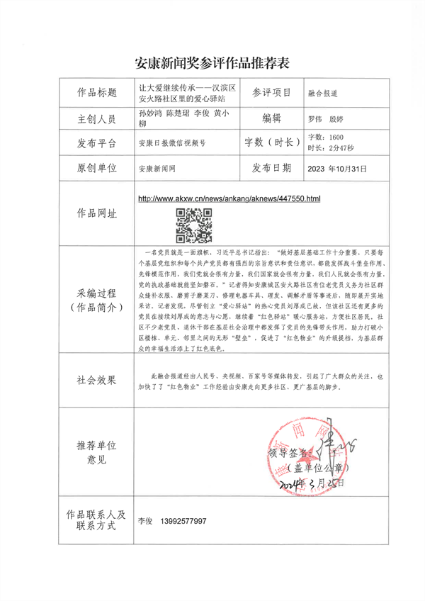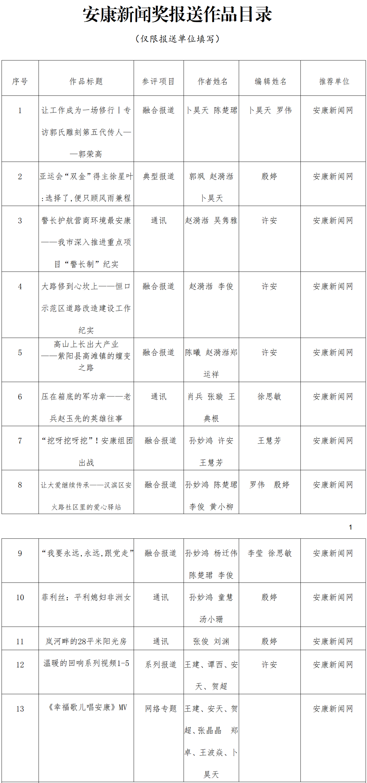 經(jīng)過編委會推薦、社黨委研究決定,擬推薦以下13件新聞作品參評2023年度“安康新聞獎”。公示時間從2024年3月25日至2024年3月29日,公示期為5個工作日。如有不同意見,請向安康日報社機關(guān)紀(jì)委、新聞管理部反映。