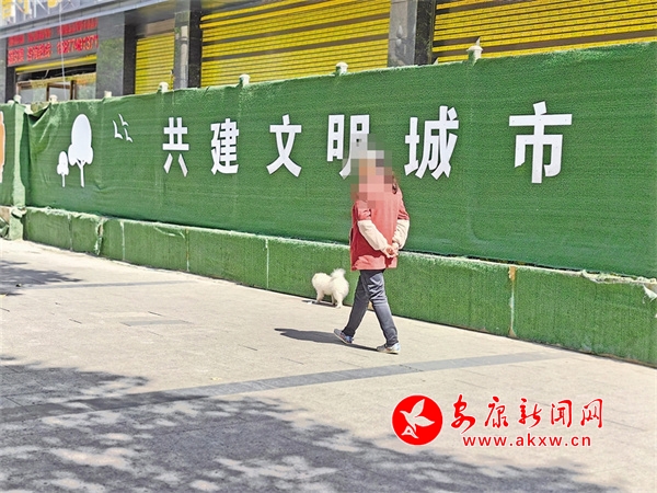 3月22日,有市民在安康中心城區(qū)大橋路人行道上不牽繩遛狗。
