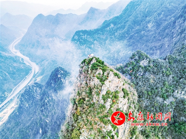 蠟燭山從嵐河岸邊拔地而起,綠水相依、雙峰景秀,傲然獨(dú)立、別有特色,峭壁懸?guī)r、小道通幽,真乃仙境之地。