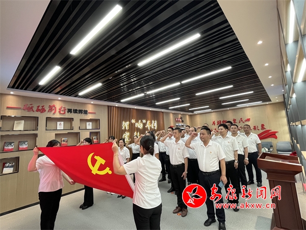 在蔣家坪女媧鳳凰茶葉現(xiàn)代示范園區(qū),六月的鳳凰茶山郁郁蔥蔥,極目遠(yuǎn)眺茶園碧綠如染,領(lǐng)略了人與自然和諧共生的美好畫卷,目睹了當(dāng)?shù)亍耙虿柚赂弧⒁虿枧d業(yè)”的發(fā)展成果。在愛國主義展館,一幅幅畫面印證著蔣家坪村學(xué)校師生和全體村民通過不懈努力,從“偏遠(yuǎn)貧窮”到“全國最美”的蝶變。全體黨員在該村黨支部書記的帶領(lǐng)下,面對鮮艷的黨旗,舉起右手,重溫入黨誓詞,以對黨的絕對忠誠和錚錚誓言,再一次接受共產(chǎn)主義理想信念的精神淬煉和靈魂洗禮。構(gòu)元初中黨支部書記以“追隨領(lǐng)袖足跡 感悟初心使命”為題給全體黨員上了一堂黨課,勉勵(lì)黨員干部“讀萬卷書,行萬里路”,主動(dòng)走出校園,通過“讀書”和“走路”開拓視野、充實(shí)自我,提升本領(lǐng),一步一個(gè)腳印去切身體驗(yàn),提升為黨育人,為國育才的使命擔(dān)當(dāng)。