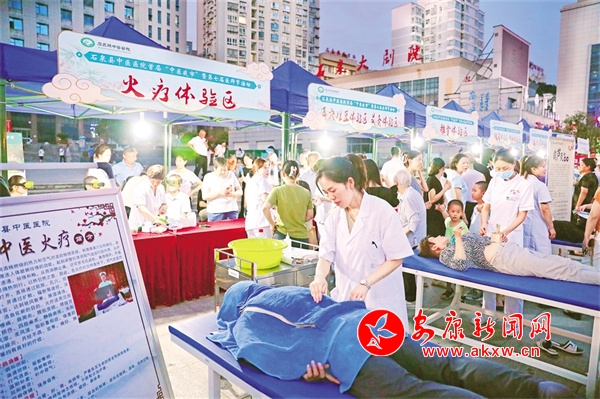 當(dāng)晚,石泉縣中醫(yī)醫(yī)院在春潮廣場(chǎng)設(shè)置中醫(yī)健身操八段錦、中草藥科普、中藥養(yǎng)生茶免費(fèi)飲用及展示、古法中藥香囊制作體驗(yàn)、中醫(yī)護(hù)理適宜技術(shù)體驗(yàn)、中醫(yī)體質(zhì)辨識(shí)與調(diào)養(yǎng)指導(dǎo)、健康咨詢(xún)等7個(gè)主題專(zhuān)區(qū),向市民展示中醫(yī)健身操、中草藥等,邀請(qǐng)市民飲用烏梅茶、美容養(yǎng)顏茶,體驗(yàn)中藥香囊制作過(guò)程,向市民講解中草藥知識(shí),為市民免費(fèi)查體,提供健康咨詢(xún)和推拿、艾灸、刮痧、拔罐、火療等多種中醫(yī)療法服務(wù),吸引了眾多市民體驗(yàn)。
