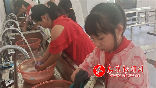 自己動(dòng)手,豐衣足食。全體學(xué)生輪流為大家就餐服務(wù),服務(wù)學(xué)生在早晨課前時(shí)間全程參與監(jiān)督廚房食材的出庫、加工、留樣過程;在午餐前15分鐘來到餐廳為同學(xué)打飯、端菜,在就餐結(jié)束后全體學(xué)生一起清洗餐具、打掃廚房;并做好每日食堂就餐服務(wù)日志。