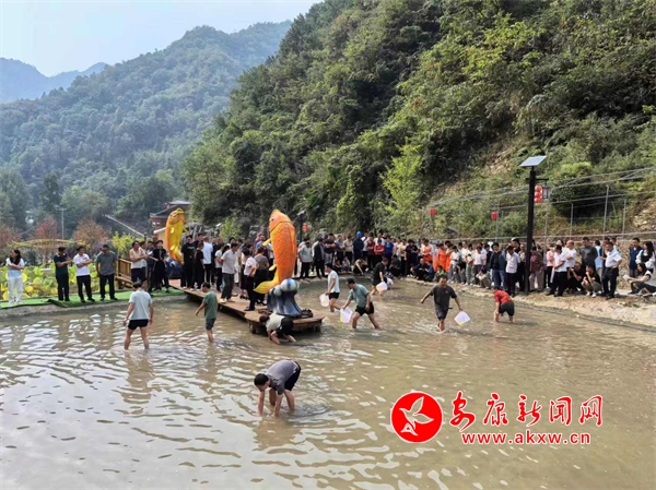 活動現(xiàn)場,進行了垂釣、徒手摸魚、剝玉米、刨土豆等趣味農事比賽。徒手摸魚是“熱門賽事”,在場地中,參賽者們目光鎖定目標,隨著哨聲響起,身手矯健地追逐著不斷跳躍的魚,不一會兒每個選手都抓住了“心選目標”。另一邊,剝玉米比賽也正在緊張有序地進行著,參賽者們鉚足干勁,聚精會神、爭分奪秒將手中的玉米棒“脫粒歸倉”。與此同時,垂釣、刨土豆也已精彩開賽,現(xiàn)場加油聲和歡笑聲不絕于耳,大家都沉浸在勞動的熱情和豐收的喜悅之中。