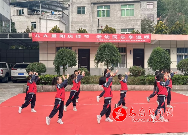 為弘揚(yáng)中華民族尊老敬老的傳統(tǒng)美德,培養(yǎng)幼兒尊老、敬老、助老、愛老的美好品質(zhì),在重陽節(jié)來臨之際,10月10日,旬陽市小河鎮(zhèn)中心幼兒園組織孩子們,走進(jìn)小河區(qū)域敬老院,開展“九九重陽慶佳節(jié),老幼同樂享溫暖”實踐活動。活動中,孩子們?yōu)闋敔斈棠太I(xiàn)上了精心準(zhǔn)備的歌舞表演,老人們和孩子們一起系上大紅綢,扭起秧歌來,大家一起進(jìn)行了有趣的游戲。孩子們用稚嫩的動作,甜美的笑容,給老人們平淡的生活里帶去了歡樂。(通訊員 劉曉玲 李冬梅)?