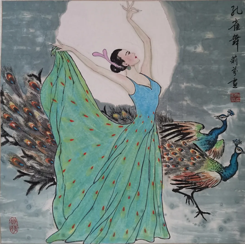 解大姐是陜北人,性格開朗、直率,說話中間或帶出一些濃重的陜北口音。雖說她主業(yè)從于政界,但她微笑的背后卻潛藏著不可掩飾的藝術(shù)天賦,揮發(fā)著令人奪目的藝術(shù)才情。繁雜的政務(wù)工作之余,她創(chuàng)作不輟,堅(jiān)持不懈,居然在多個(gè)藝術(shù)門類收獲頗豐,好評(píng)連連。寫小說,她寫出幾十萬字的長(zhǎng)篇出版發(fā)行;寫劇本,竟拍成了電影予以公映;學(xué)國(guó)畫,亦讓藝術(shù)界的大咖贊口不絕。我雖不才,空有浮名,但深耕藝界多年,對(duì)于其中的好賴還能分出一二。我感到,一個(gè)人的人品和藝品基本一致,解大姐的藝術(shù),是扎根于她熟悉的陜北大地的藝術(shù),是生長(zhǎng)在山峁峁上經(jīng)歷風(fēng)霜雨雪的藝術(shù),就像那陜北倔強(qiáng)的疙瘩柳,散發(fā)著對(duì)土地對(duì)生活的親近和熱情,對(duì)人生價(jià)值實(shí)現(xiàn)的不屈和追求。看到她的國(guó)畫新作,有陜北剪紙等民間藝術(shù)的滋養(yǎng)和影響,真切而樸實(shí)。她的飛天人物系列,泥古而不落窠臼,使我想到疙瘩柳條隨風(fēng)擺動(dòng)的婀娜風(fēng)姿,溫溫潤(rùn)潤(rùn),令人遐思和向往;她的花鳥畫作,使我想到陜北山野一片蒼茫之間,一朵兩朵盛開的山丹丹花,嬌艷得令人不忍觸手;她的山水畫作,又猶如陜北山原上嫩黃的棗花,洋溢著撲面而來的質(zhì)樸、清新和率真之氣。