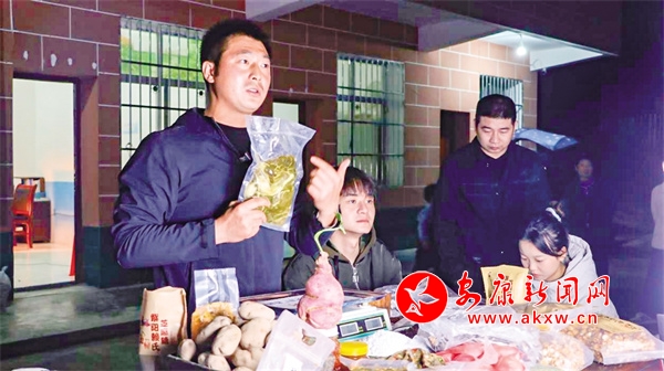 說起這場直播首秀吳勇感慨萬千,他說怎么也想不到性格有些內(nèi)向的自己能走上直播的舞臺(tái),但如果真能把群眾的產(chǎn)品賣出去,做點(diǎn)讓群眾看得見摸得著的實(shí)事,自己也愿意嘗試一下。吳勇說,自駐村以來通過村上群眾會(huì)、院落會(huì)以及日常的入戶走訪,與當(dāng)?shù)厝罕娫缫呀Y(jié)下深厚友誼,群眾把他當(dāng)家人,他把自己也當(dāng)成了村上的一員。就在前不久,村上開展人居環(huán)境集中整治工作,吳勇來到一戶門前擺放凌亂的群眾家中,宣傳環(huán)境改善提升工作,當(dāng)了解到只有兩位留守老人在家且腿腳不便時(shí),他便主動(dòng)上手,將老人房前屋后打掃得干干凈凈,臨走時(shí),老人便拿出一些土豆片、霉豆腐給他表示感激,就在他婉言拒絕時(shí),老人隨口的一句話扎進(jìn)了吳勇的心里:“你拿去嘛,家里多,吃又吃不完,又沒有地方賣,你吃了也是在給我們幫忙哦。”