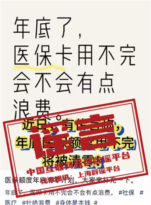真相:臨近年底,社交平臺上關(guān)于“醫(yī)保額度”的話題,如“職工門診統(tǒng)籌額度再不用完,12月底就要清零了”“要抓緊時間用,不然白白浪費(fèi)了”又熱了起來。經(jīng)求證發(fā)現(xiàn),所謂的“年底清零”純屬無稽之談,此前已被多地醫(yī)療保障局公開辟謠。