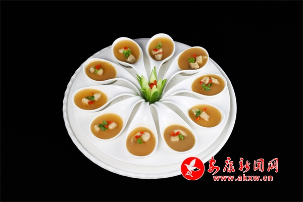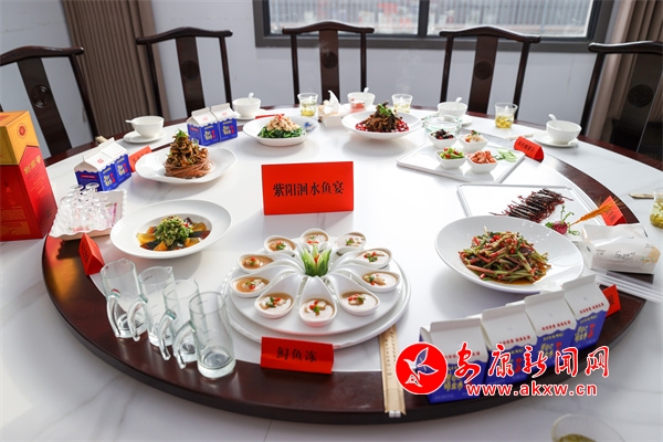 “紫陽(yáng)洄水魚(yú)宴”由8個(gè)涼菜,即:香酥小魚(yú)、干煸牛肉、茶香魚(yú)皮、鱘魚(yú)凍、撈汁七彩花生、酸辣四拼、雙色變蛋、涼拌折耳根;8個(gè)熱菜即:茶香鱘魚(yú)、紫蘇魚(yú)片、熗鍋鯉魚(yú)、釀羊肚菌、辣子雞、臘味三拼、魚(yú)頭燉黑豆腐、當(dāng)歸白蘿卜燉羊肉;一個(gè)湯菜:魚(yú)丸湯;3道小吃即:魚(yú)肉餃子、茶香餅、紫菜魚(yú)餅;主食:金銀米飯、酸菜面和飯后水果拼盤組成。據(jù)了解該宴席是繼漢濱區(qū)流水魚(yú)宴、石泉縣江魚(yú)魚(yú)宴之后,全市公開(kāi)推向市場(chǎng)的第三個(gè)以魚(yú)為主料的專業(yè)魚(yú)宴。?