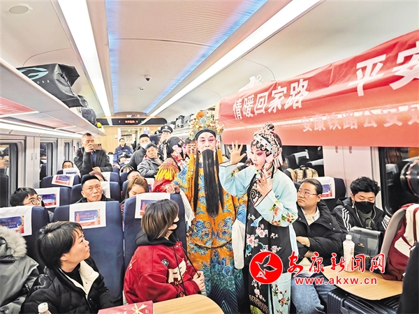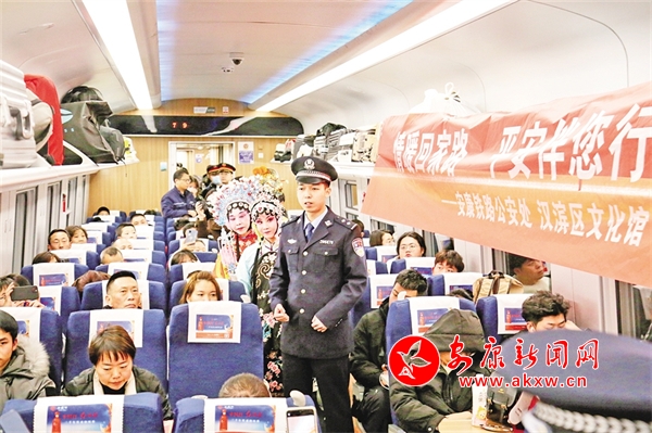 1月14日,由西安開往達(dá)州的D173次列車上,西安鐵路公安局安康公安處聯(lián)合漢濱區(qū)文化館、安康漢調(diào)二黃研究院的文藝工作者,以地方非物質(zhì)文化遺產(chǎn)技藝展示等方式,結(jié)合春運(yùn)開展反詐知識(shí)宣講,讓旅客們?cè)诖哼\(yùn)旅途中感受安康地方傳統(tǒng)文化獨(dú)特魅力,提升安全意識(shí)。