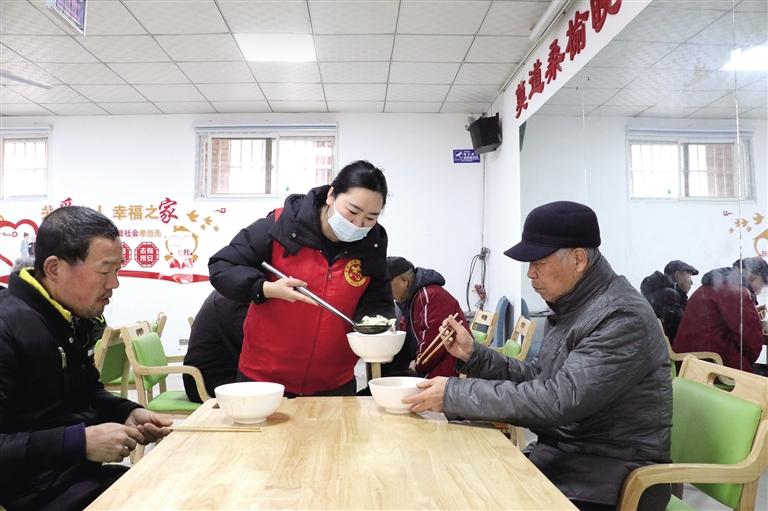 1月14日中午,在安康市漢濱區(qū)培新街社區(qū)的孝義食堂,十余位老人每四人圍坐一桌。每人一碗熱氣騰騰的燴麻食下肚,驅(qū)散了冬日的寒意。
