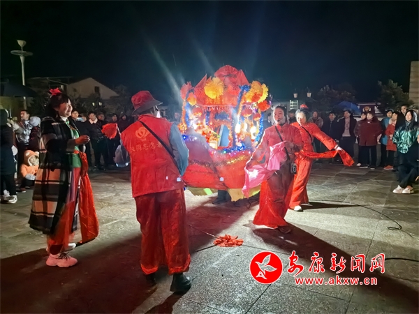 在位于漢陰縣平梁鎮(zhèn)的興隆佳苑社區(qū),春節(jié)期間,小區(qū)里處處洋溢著節(jié)日氛圍。夜幕降臨,社區(qū)廣場響起陣陣鑼鼓聲,?;ù硌菡介_始。只見表演者雙手提船、配合默契,船體隨著“波浪”旋轉(zhuǎn)、顛簸,身穿喜慶艷麗的服裝、頭戴五彩頭飾的表演人員個個精神抖擻,一邊前行,一邊唱著漢陰本地的花鼓戲,祈求來年風調(diào)雨順、福壽安康。翻飛的彩扇、華麗的彩船,精心編排、詼諧幽默的表演,為社區(qū)群眾呈現(xiàn)了一場精彩的視覺盛宴。