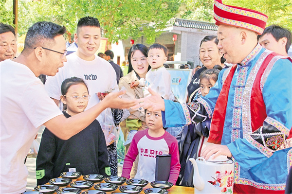 來自臺灣的游客阿偉第一次體驗這“驚心動魄”的待客禮,雙手接碗,仰頭飲盡,再用力將碗口朝下摔向青石板?!斑旬敗币宦暣囗?,瓷片四濺,周圍頓時響起一片喝彩?!八ね氲臅r候,心里真痛快!”阿偉笑著說。