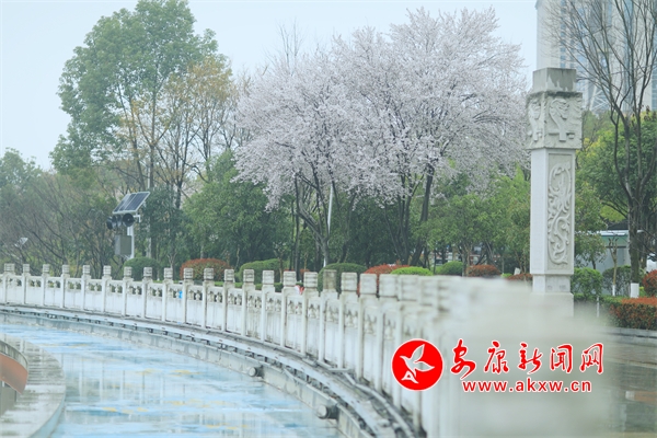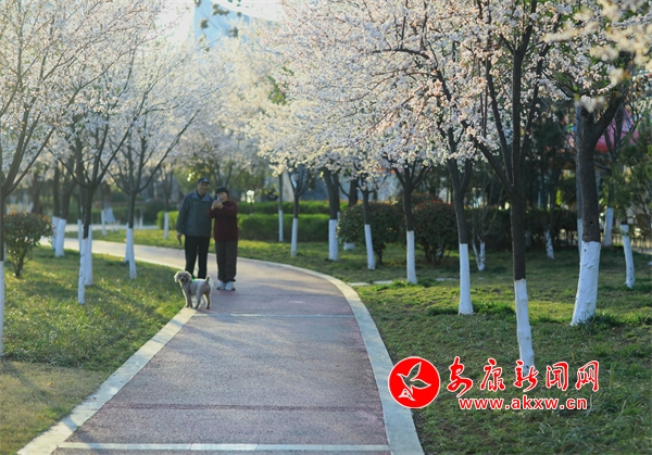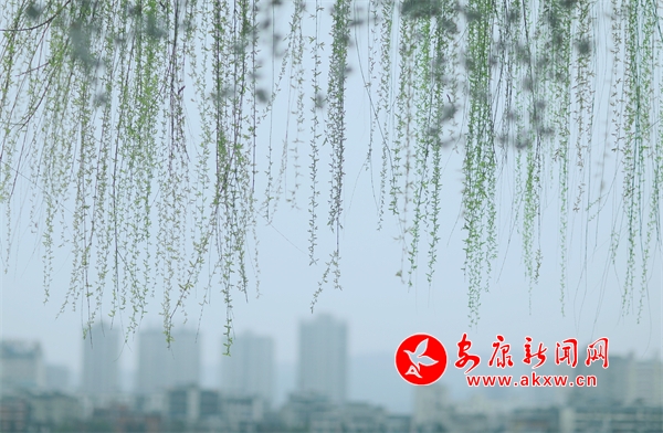 花朵盛開(kāi),柳樹(shù)垂絲,遠(yuǎn)處的城市建筑若隱若現(xiàn)。人們?cè)诮吢健⑿蓓?,享受著春日里的美好時(shí)光。此時(shí)的畫(huà)面將現(xiàn)代文明與自然生態(tài)完美融合,讓人感受到城市中一抹特有的清新與寧?kù)o。