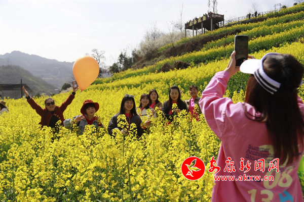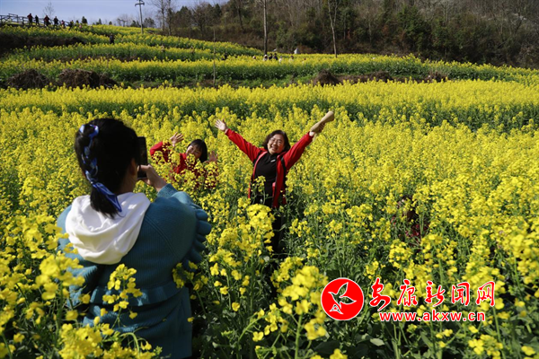 陽(yáng)春三月,嵐皋縣城關(guān)鎮(zhèn)水田村1000畝繁茂的油菜花海,為大地迅速披上一層金色的盛裝,吸引眾多的游客紛紛前來(lái)觀(guān)光旅游,分享陽(yáng)春三月、鳥(niǎo)語(yǔ)花香的鄉(xiāng)間美麗景色。(攝影 廖霖)?