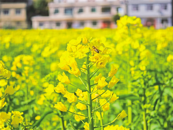 春暖花開,旬陽市仁河口鎮(zhèn)水泉坪千畝油菜花海競相綻放,慕名而來的游客們在觀光步道上觀光散步,三五伙伴一起拍照打卡、合唱民歌,欣賞高山出平川的獨特自然風(fēng)光。