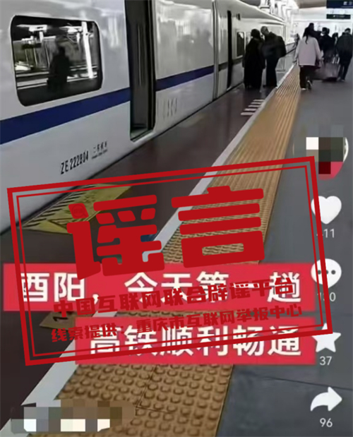 真相:近日,某網(wǎng)民在互聯(lián)網(wǎng)平臺發(fā)布信息稱“酉陽,今天第一趟高鐵順利暢通”,引發(fā)關(guān)注。經(jīng)核實,網(wǎng)傳信息系謠言,酉陽縣暫未建成高鐵站。根據(jù)建設(shè)計劃,黔吉高鐵重慶段將于年內(nèi)開工建設(shè),線路貫穿黔江區(qū)、酉陽縣、秀山縣三地,線路全長約224.2km,全線設(shè)置車站3座,整個建設(shè)工期大概5年左右,預(yù)計在2030年之前全面建成通車。目前,警方已對造謠者展開調(diào)查。(來源:“重慶辟謠”微信公眾號)