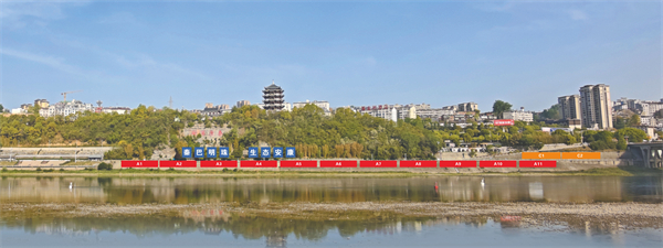 江北廣告位紅色區(qū)域:A1—A11,規(guī)格35米*7米,費用7萬。