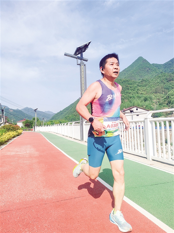沿途的補給站早已經(jīng)準(zhǔn)備就緒,啦啦隊舉著“加油”的標(biāo)語牌揮舞,沿途的村民不分男女老少紛紛為選手鼓勁。比賽中,臨近退休卻堅持跑步10余年的“老將”肖軍鼓勵大家:“一定要穩(wěn)住節(jié)奏,后半程才不會掉速!”大顆大顆的汗水在他臉頰流淌,卻掩不住他眼中躍動的光芒。