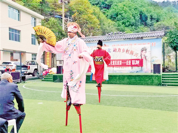 在五峰村,村支部書記羅仁春告訴記者,2023年村委會牽頭成立了五峰村文化民俗文藝協(xié)會,陸續(xù)加入的48名會員涵蓋老中青三代,既有傳承高蹺絕技的老人,也有主動學(xué)習(xí)弦子腔的年青一代。今年32歲的村民小梅加入?yún)f(xié)會后,一改往日下班后悶在家中的狀態(tài),每天下午吃完飯都會下樓和新認識的姐妹載歌載舞,很快就成為舞蹈隊的主力?!耙郧安恢牢覀兇迳线€有文藝協(xié)會,自從村上干部告訴我后,我就趕緊加入了這個小團體,既鍛煉了身體,又愉悅了心情,生活幸福感越來越強烈。”身著舞蹈服的小梅身姿婀娜,水袖飛揚間,明媚的笑容如花一樣燦爛。