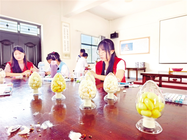 雙營(yíng)村共享蠶室,村民們正忙著采收夏蠶繭。