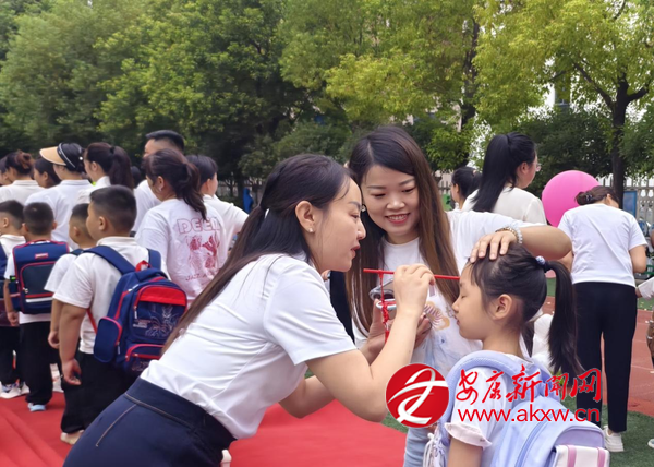 走紅毯環(huán)節(jié)將氛圍推向高潮。班主任帶領(lǐng)新生與家長手牽手緩緩前行,周圍的歡呼聲此起彼伏,孩子們在這份熱鬧中,真切感受到“成為小學生”的榮譽感。“摸福禮”環(huán)節(jié)巧思滿滿,8種寓意吉祥的物品整齊擺放,孩子們懷著好奇伸手觸摸,在指尖的互動中,收下滿含期許的祝福。