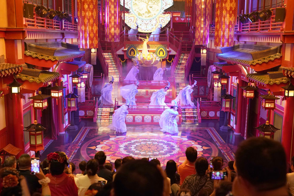 2024年5月19日,游客在西安長安十二時辰景區(qū)觀看表演《霓裳羽衣舞》?!伴L安十二時辰”主題街區(qū)將唐朝文化與現(xiàn)代旅游相結(jié)合,讓游客仿佛置身于千年前的長安城。近年來,西安積極推進(jìn)產(chǎn)業(yè)升級和文旅融合,以中華優(yōu)秀傳統(tǒng)文化創(chuàng)新創(chuàng)造活力助推經(jīng)濟(jì)社會高質(zhì)量發(fā)展,如大唐不夜城一樣火爆“出圈”的文旅項目層出不窮。
