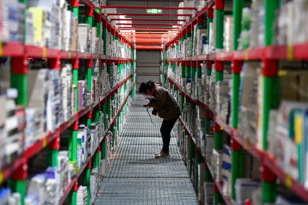 2025年2月19日,工作人員在泰安新聞出版小鎮(zhèn)圖書倉庫內(nèi)整理書籍。近年來,山東省泰安市立足出版印刷產(chǎn)業(yè)優(yōu)勢,打造泰山新聞出版小鎮(zhèn),通過拉長壯大產(chǎn)業(yè)鏈,推動產(chǎn)業(yè)集聚發(fā)展,構(gòu)建龍頭引領(lǐng)、鏈條延伸、集群共進(jìn)的出版印刷產(chǎn)業(yè)“雁陣”。目前,小鎮(zhèn)已吸引60余家企業(yè)入駐,涵蓋編輯出版、印刷發(fā)行、倉儲物流、版權(quán)交易、研學(xué)旅游等產(chǎn)業(yè)鏈各環(huán)節(jié)。