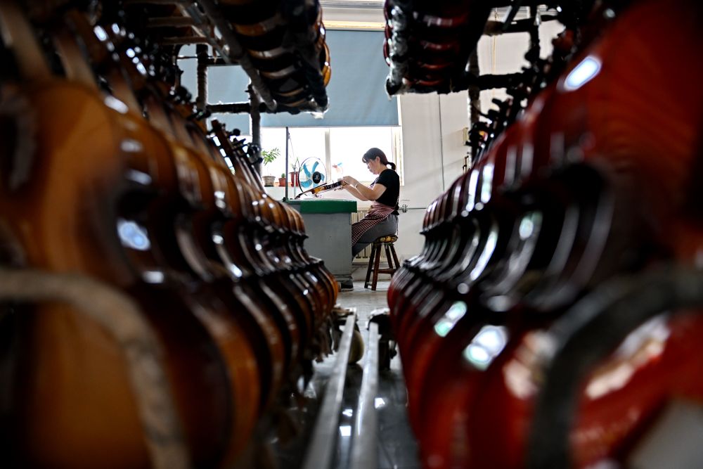 2025年5月28日,河北省武強(qiáng)縣一家樂器生產(chǎn)企業(yè)的工人在制作尤克里里。武強(qiáng)縣樂器產(chǎn)業(yè)歷經(jīng)30余年的發(fā)展,形成擁有超過150家企業(yè)、從業(yè)人員萬余人的產(chǎn)業(yè)集群,產(chǎn)品覆蓋100多個品種、400多種規(guī)格。近年來,武強(qiáng)縣依托樂器文化產(chǎn)業(yè)資源,打造集樂器加工、樂器體驗、音樂展演和休閑度假等業(yè)態(tài)為一體的周窩音樂小鎮(zhèn),同時創(chuàng)新“樂器+”鄉(xiāng)村振興模式,持續(xù)增強(qiáng)樂器產(chǎn)業(yè)的富民強(qiáng)縣作用。2024年武強(qiáng)縣樂器產(chǎn)業(yè)實現(xiàn)營收23.8億元,旅游收入超10億元。