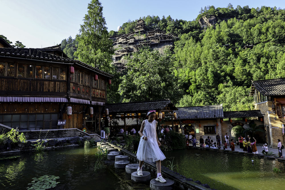 2025年7月11日,游客在位于江西省上饒市望仙鄉(xiāng)的望仙谷景區(qū)游覽。近年來,望仙谷景區(qū)因其獨特的“仙俠世界”景觀火爆出圈,吸引大批游客來此觀光。景區(qū)2024年接待游客310萬人次,全年實現(xiàn)旅游收入5.28億元,同時顯著帶動周邊鄉(xiāng)鎮(zhèn)的食、住、行、娛等行業(yè)發(fā)展。望仙谷景區(qū)的建設(shè)運營促進(jìn)了村民返鄉(xiāng)和能人進(jìn)鄉(xiāng),提供直接就業(yè)崗位超過2000個,帶動周邊就業(yè)3萬余人。