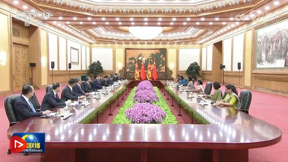 10月14日上午,國家主席習(xí)近平在北京人民大會(huì)堂會(huì)見來華出席全球婦女峰會(huì)的斯里蘭卡總理阿馬拉蘇里亞。