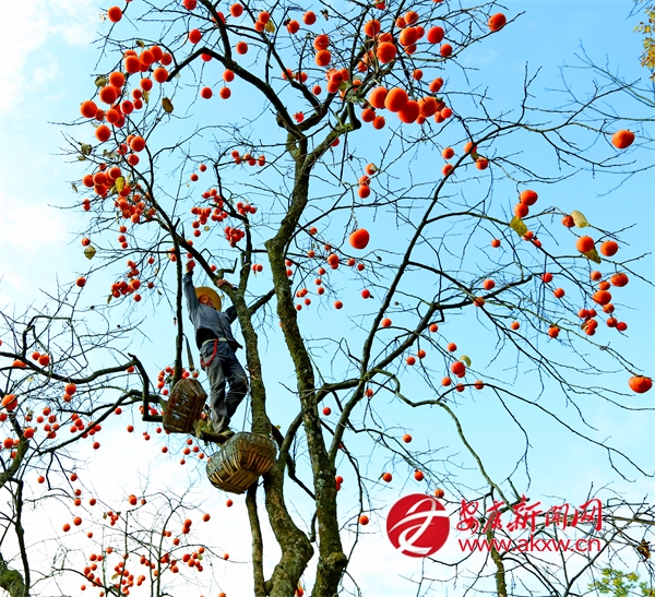 眼下正是柿子成熟的季節(jié),白河縣城關(guān)鎮(zhèn)安福村芍藥花園區(qū)附近漫山遍野的柿子,像一個(gè)個(gè)橘黃色的小燈籠掛滿(mǎn)枝頭。