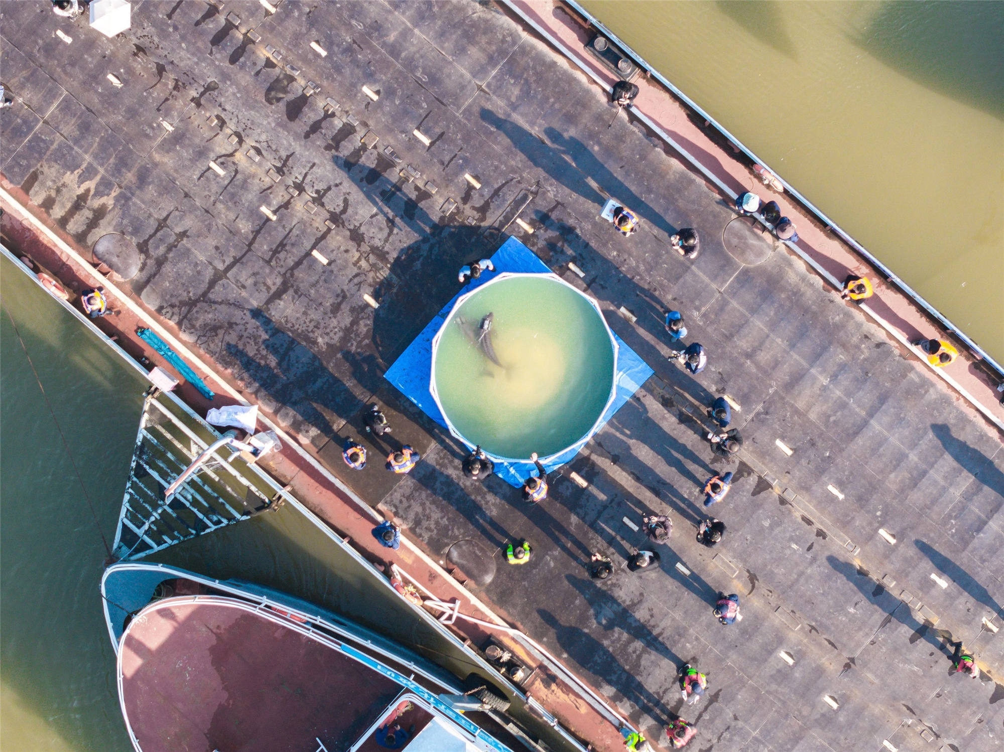 11月14日,在湖北洪湖市長江洪湖段,兩頭經(jīng)過野化訓(xùn)練的長江江豚被放歸長江干流,中科院水生所研究人員正實(shí)時監(jiān)測。這已經(jīng)是我國第二次開展這樣的野化放歸行動。