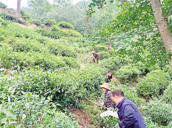 村民在茶葉園區(qū)務工
