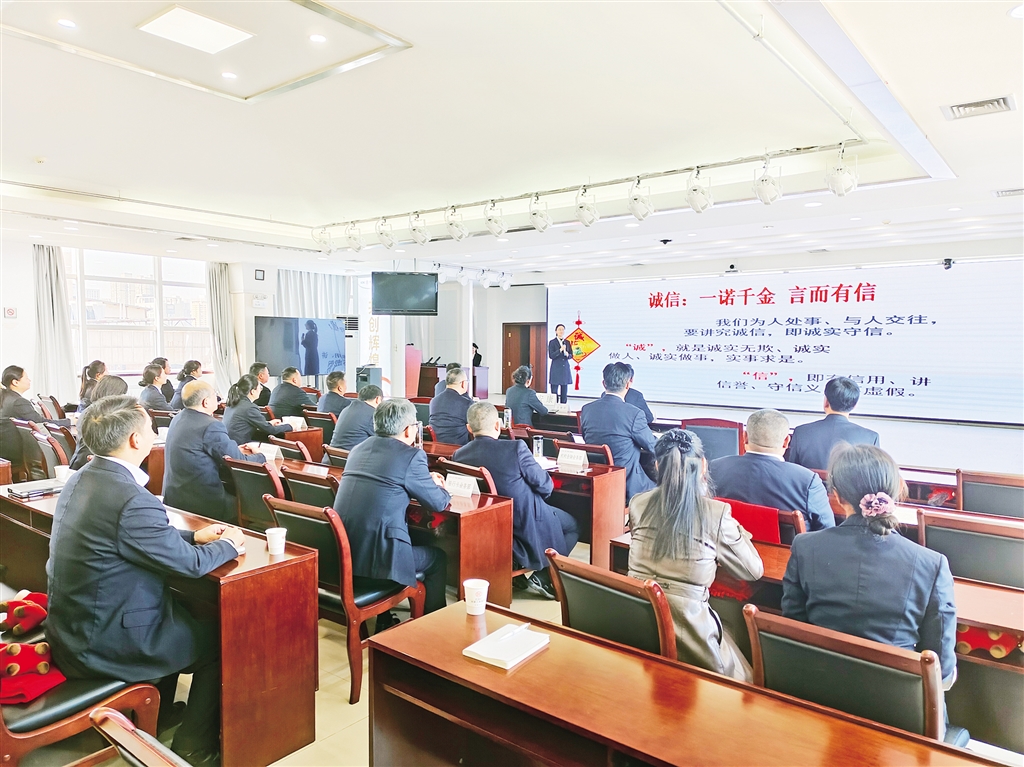 本網(wǎng)訊(記者 唐正飛 通訊員 楊光婷)“我們?yōu)槿颂幨隆⑴c人交往,要講究誠信,即誠實守信……”11月21日,中國工商銀行安康分行會議室一場“以誠立身,以信致遠”主題宣講會正在火熱進行。工作人員化身誠信“宣講員”,解讀“誠信”內(nèi)涵,分享踐行誠信故事。