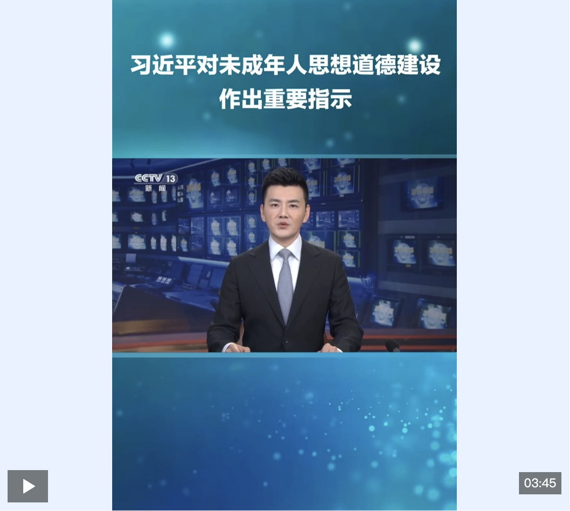 近日,習(xí)近平總書記對(duì)未成年人思想道德建設(shè)作出重要指示,要求落實(shí)立德樹人根本任務(wù),堅(jiān)持把未成年人思想道德建設(shè)作為戰(zhàn)略性、基礎(chǔ)性工作來抓。(詳情>>)