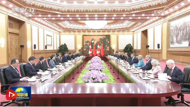 1月16日上午,國家主席習(xí)近平在北京人民大會堂會見來華進行正式訪問的加拿大總理卡尼。